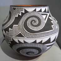 Historically, Acoma was known for large, thin-walled "ollas," jars used for storing food and water. With the arrival of the railroad and tourists in the 1880s, Acoma potters adapted the size, shapes and styles of their pots in order to appeal to the new buyers.