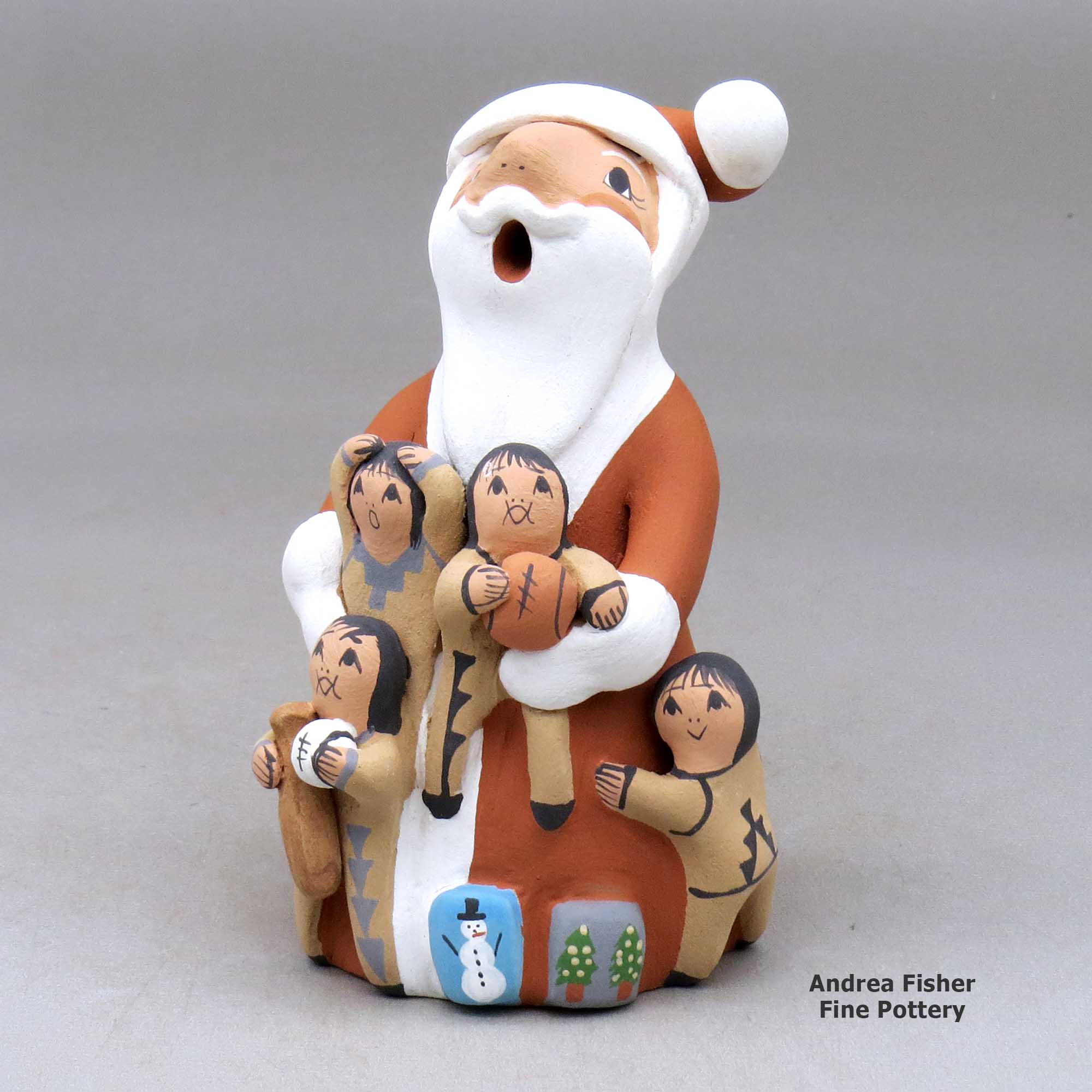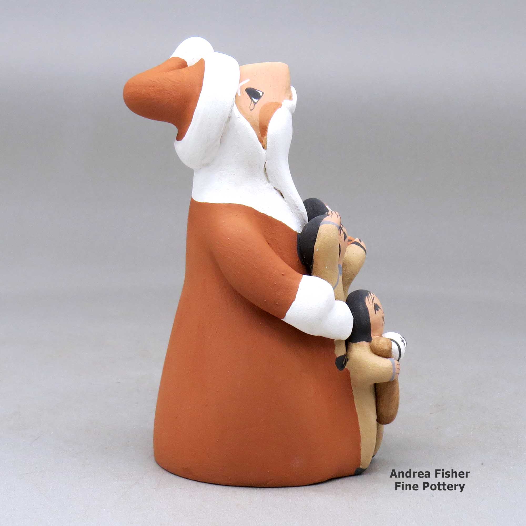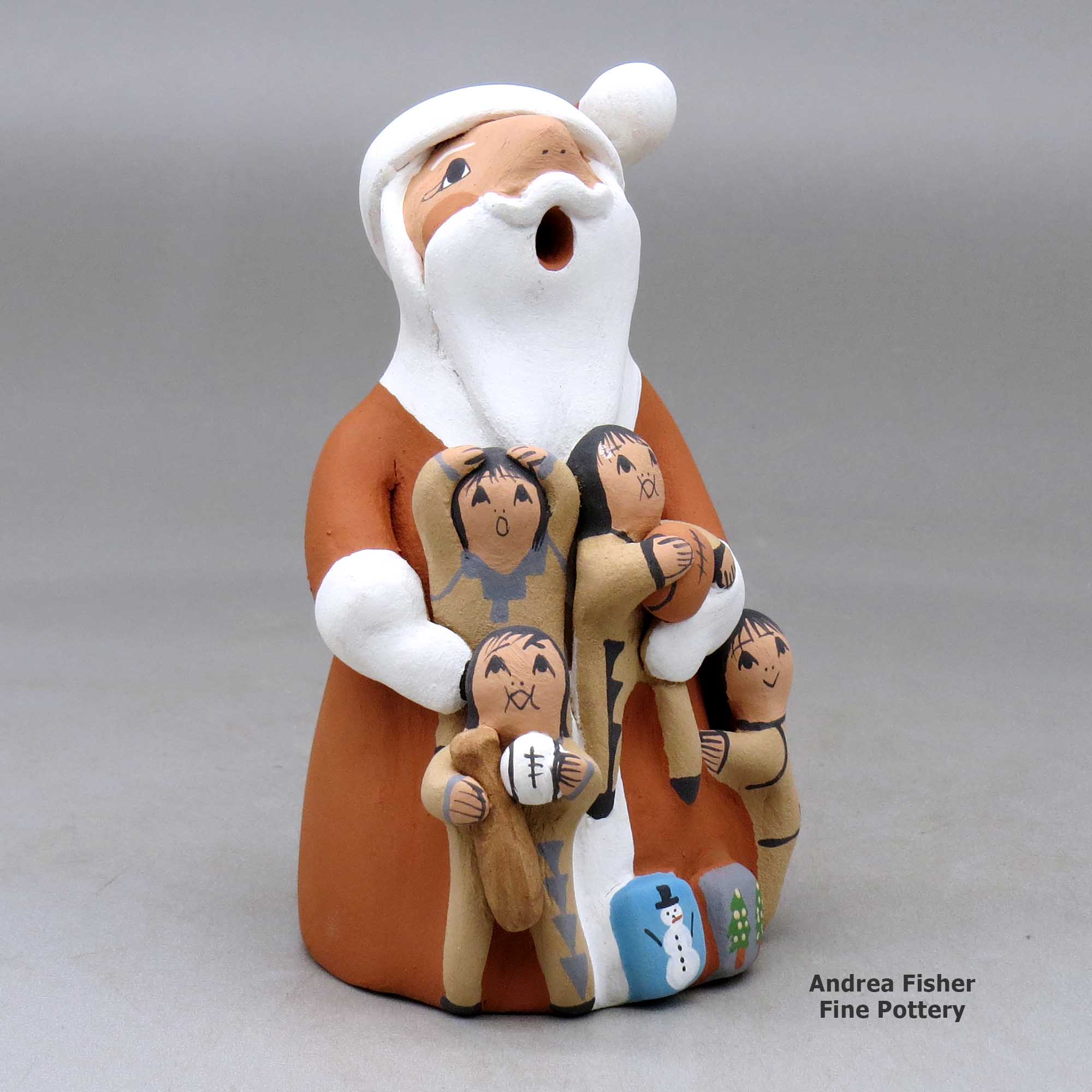 Diane Lucero, Jemez, A standing Santa Claus storyteller figure with four children and gifts