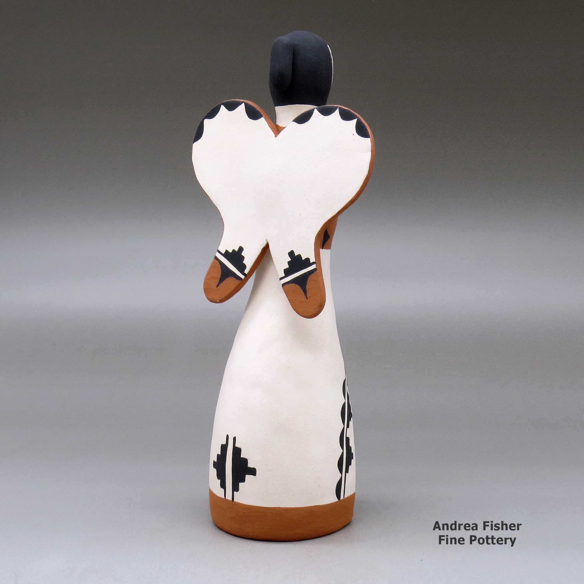 Angel only participates in the Santo Domingo Arts and Crafts Show on Labor Day Weekend at Santo Domingo Pueblo. Her favorite shapes to make are angels, her favorite designs to work with are traditional and geometric, and she says she gets her inspiration from her family. Angel and Ralph both say they love making their pottery and they especially love to hear when people enjoy their work.