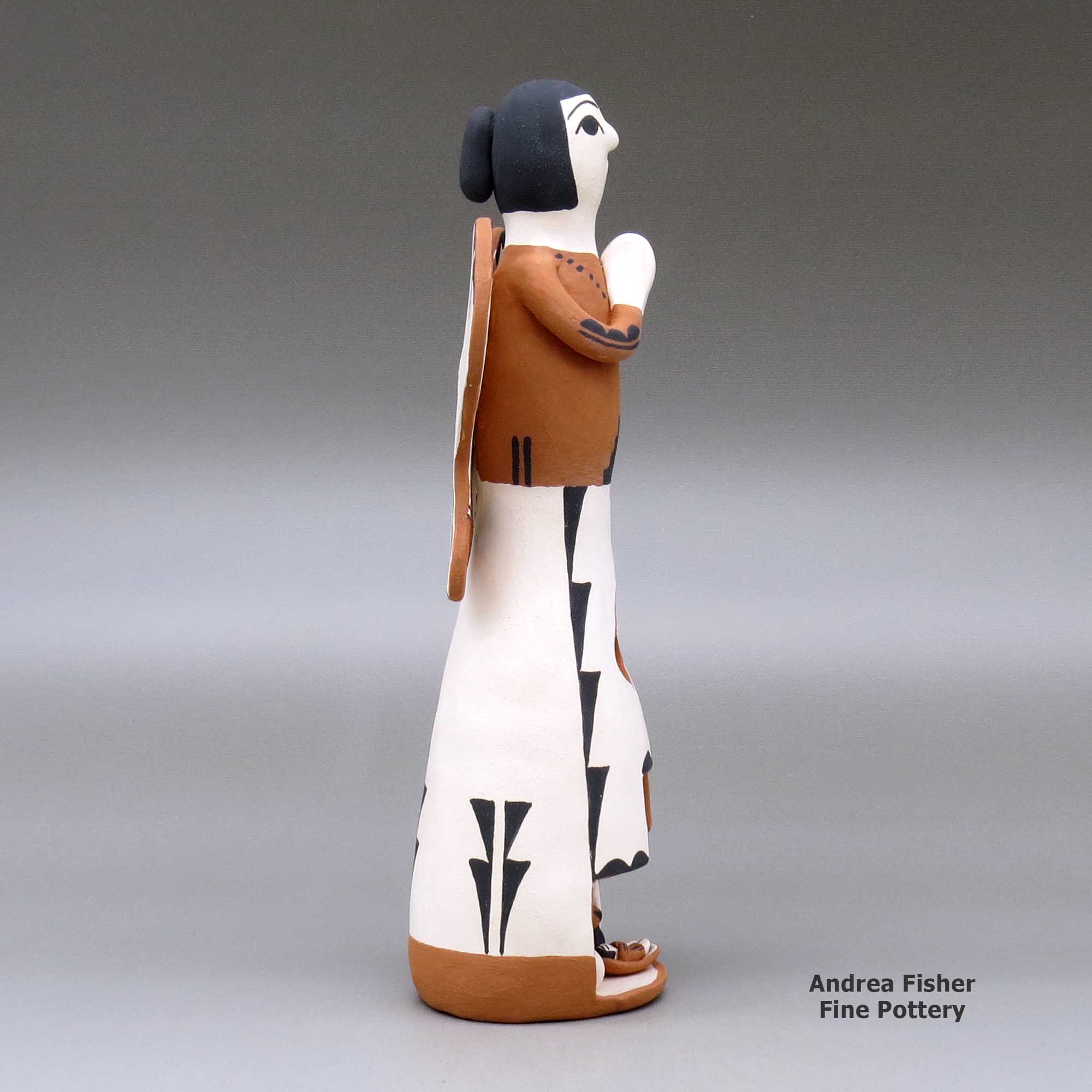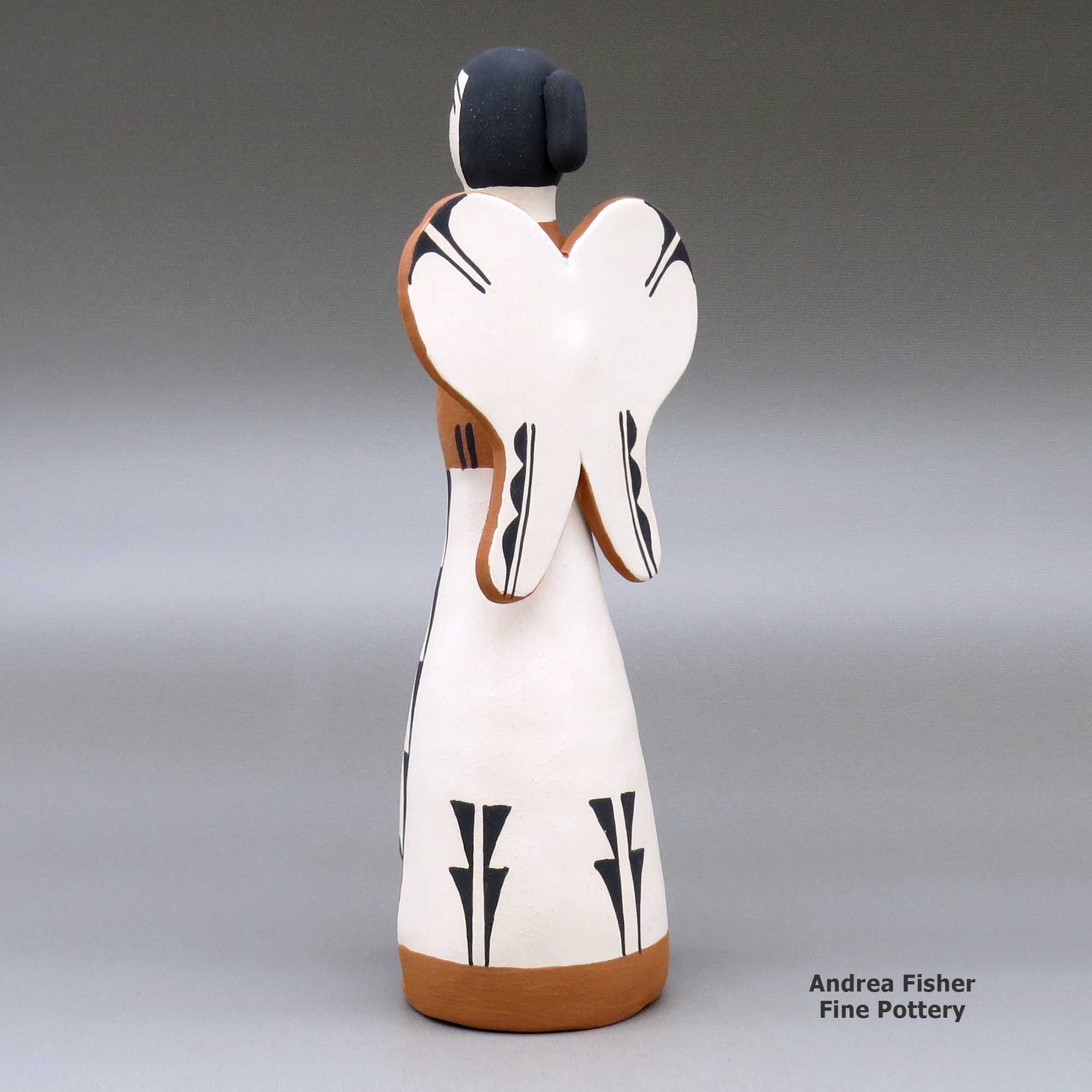 Angel only participates in the Santo Domingo Arts and Crafts Show on Labor Day Weekend at Santo Domingo Pueblo. Her favorite shapes to make are angels, her favorite designs to work with are traditional and geometric, and she says she gets her inspiration from her family. Angel and Ralph both say they love making their pottery and they especially love to hear when people enjoy their work.