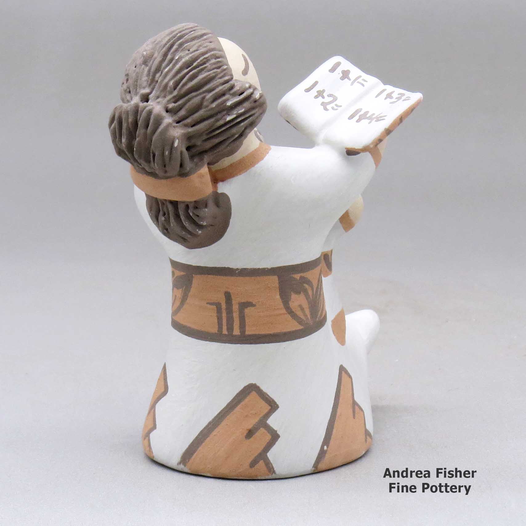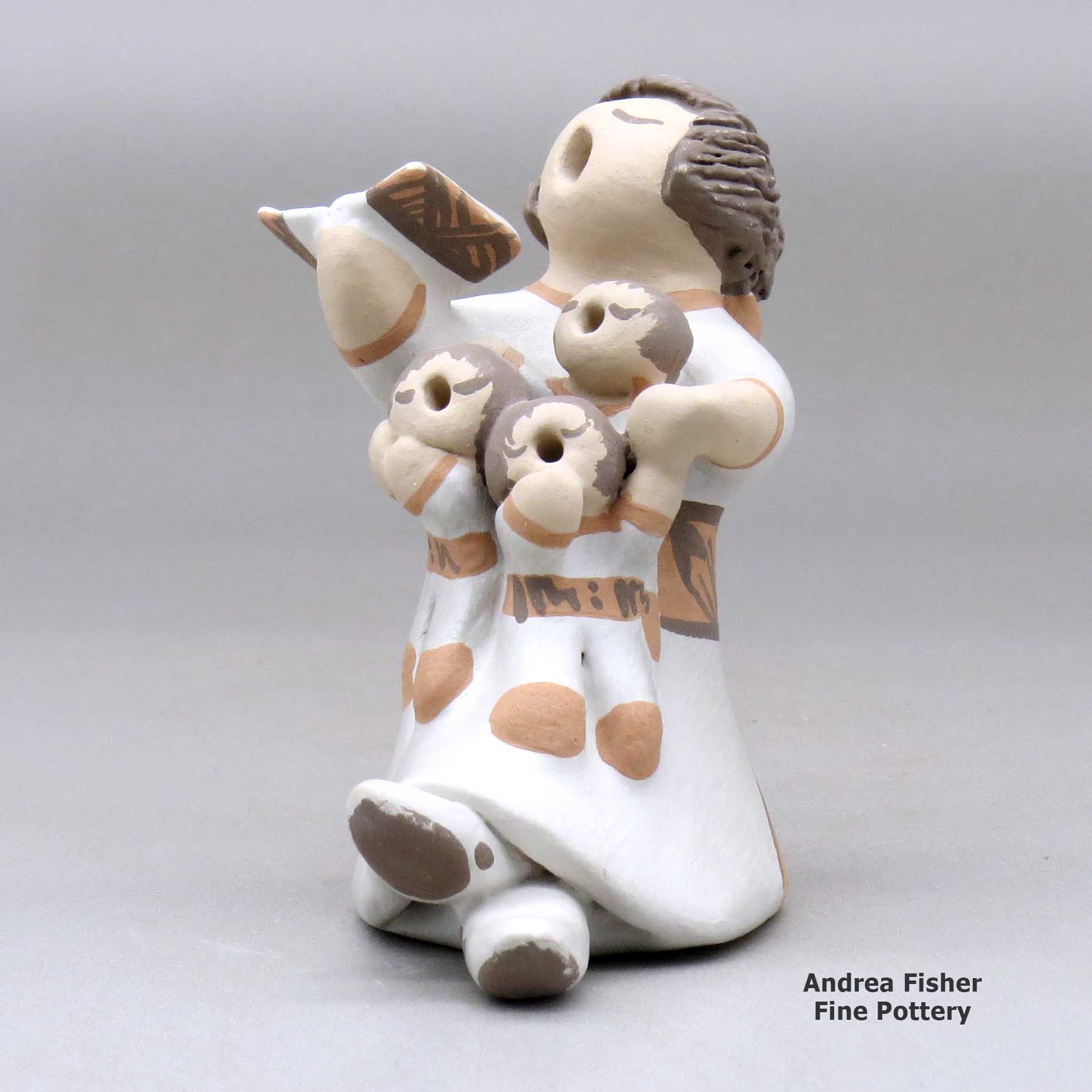 Mona makes primarily Corn Maidens, storytellers, nativities, figures, and turtles. She also makes some polychrome jars and bowls. She is most known for the graceful shapes of her figures, their distinctive poses and their intricately carved features.