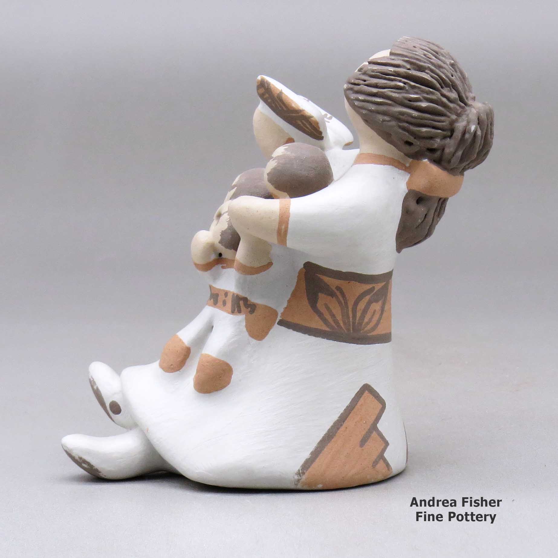 Mona Teller (Pa-Shawn-Thupa-Wa) was born into Isleta Pueblo in October, 1960. Her parents are Stella and Louis Teller. Among her siblings are Chris, Robin and Lynette Teller. She grew up in a pottery making household and became active in the marketplace with her first storyteller figures when she was in her early teens.