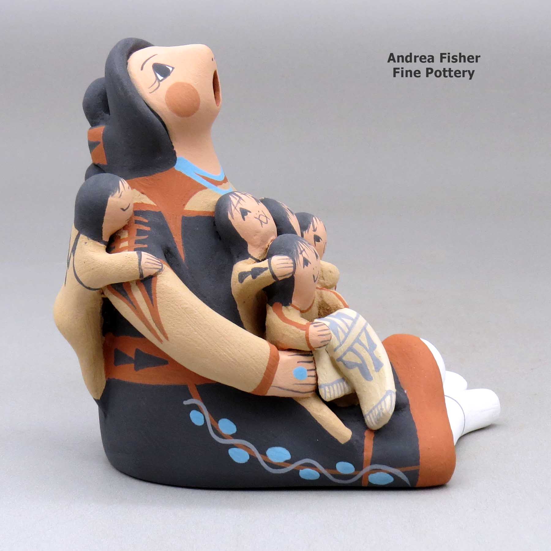 The focus of Jemez pottery today has mostly turned to the making of storytellers, nativities and other figures. Figures are an art form that now accounts for more than three-quarters of their pottery production.