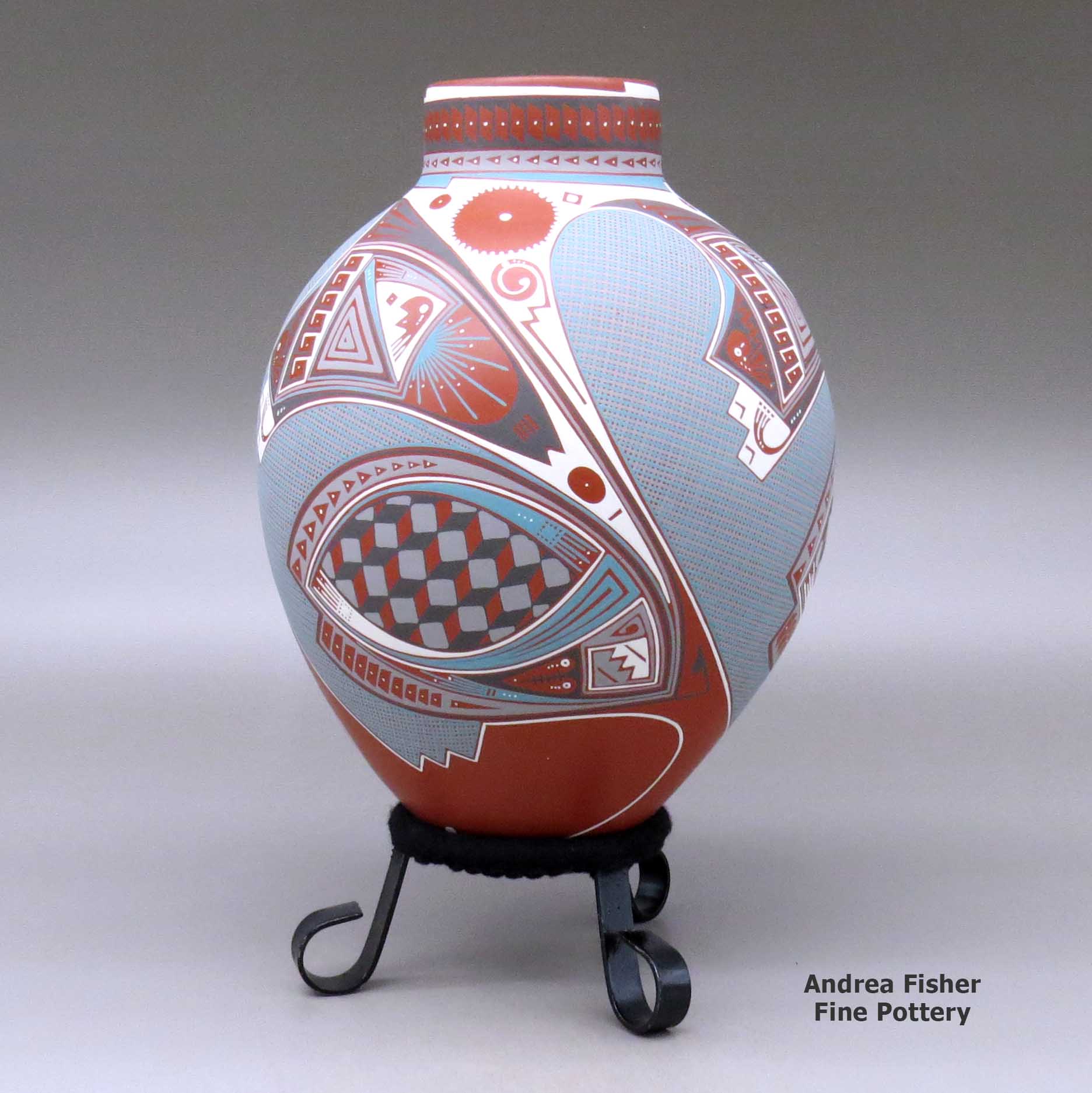 Mata Ortiz pottery incorporates elements of contemporary and prehistoric design and decoration, and each potter or pottery family produces their own distinctive, individualized ware. Young potters from surrounding areas have been attracted to the Mata Ortiz revival and new potting families have developed while the art movement continues to expand. Without the restraints of traditional religious practices or gender constraints, a vibrant flow of new ideas has enabled the pottery of Mata Ortiz to avoid the derivative repetition common to virtually all folk art movements. This blend of economic need, gender equality, cultural expression and artistic freedom has produced a unique artistic movement in today's community.