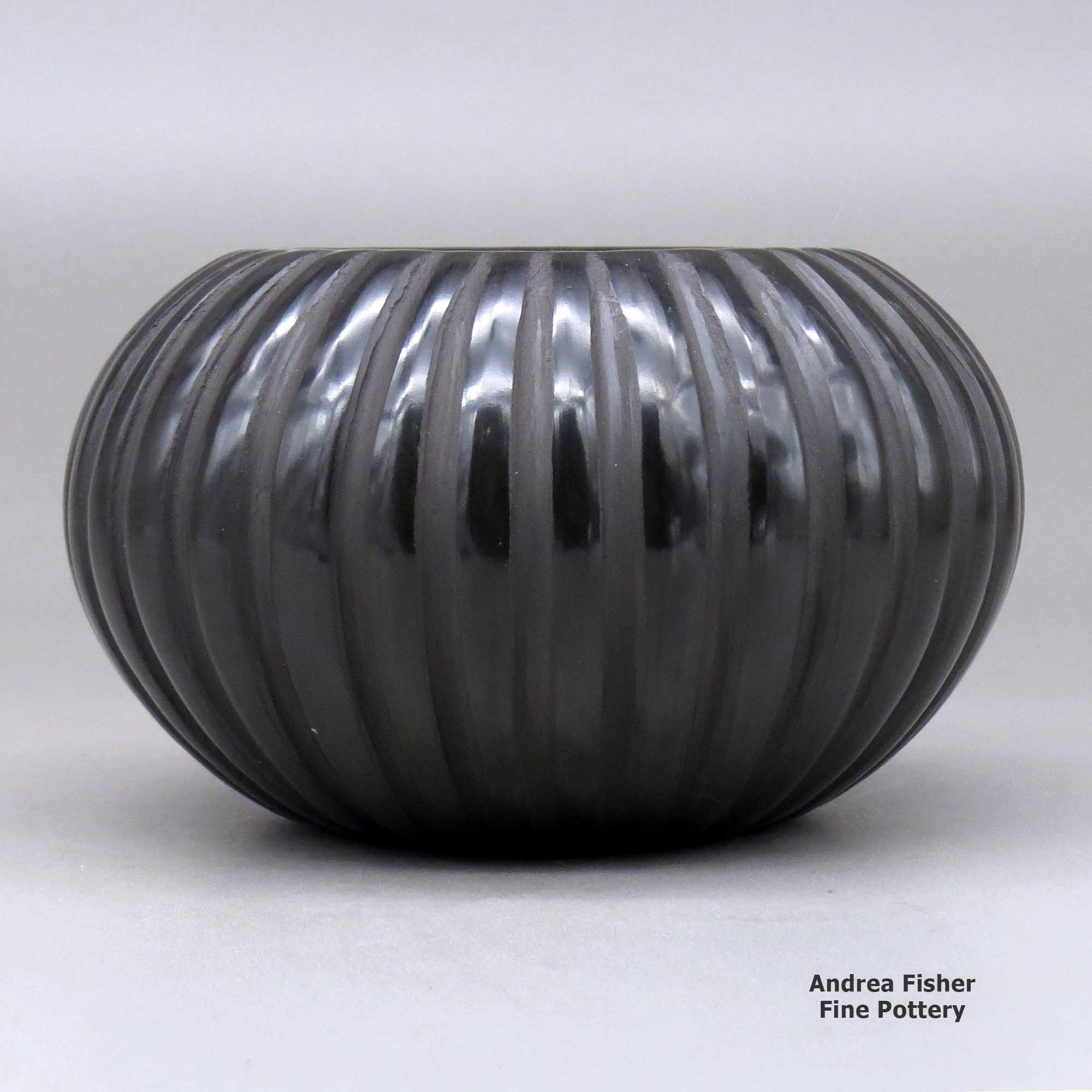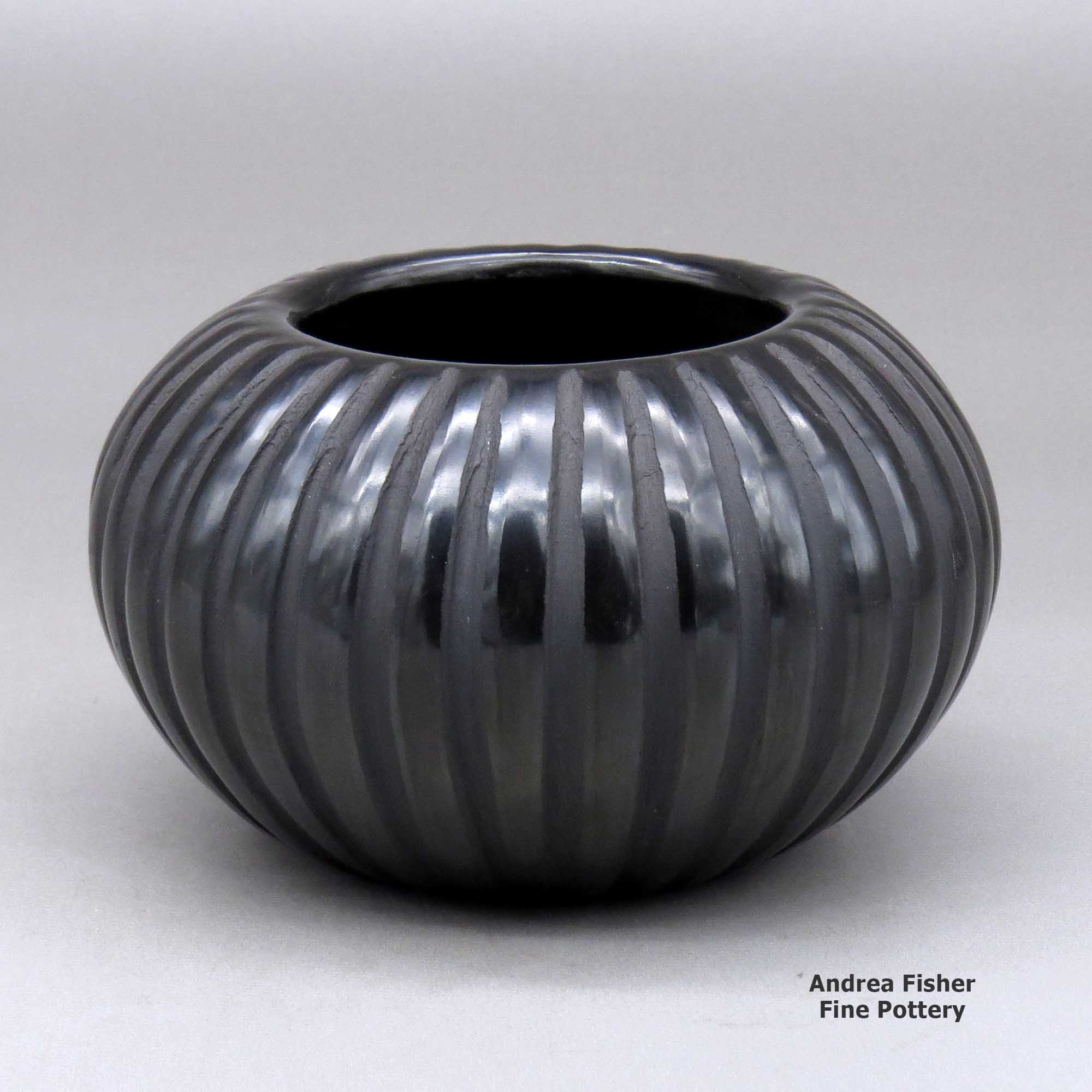 Angela Baca was born into Santa Clara Pueblo in 1927, the daughter of Severa Tafoya and Cleto Tafoya. She grew up learning the traditional way to make Pueblo pottery and experimented with different styles before settling on making primarily carved redware and blackware melon bowls around 1955. Her melon bowls won awards at the Santa Fe Indian Market in 1977, 1979, 1980, 1981 and 1992.