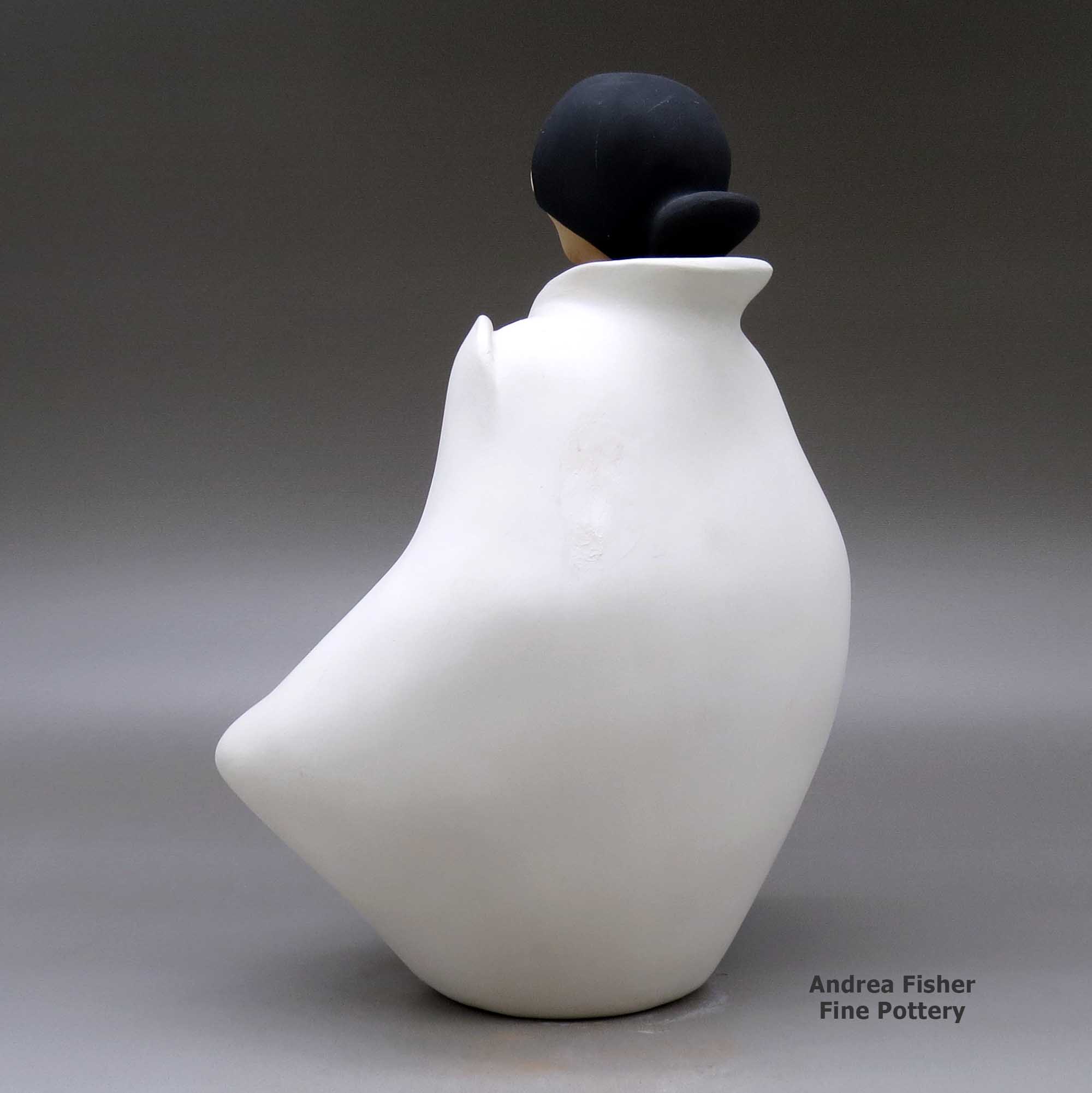 Storytellers are usually grandparent figures with the figures of children attached to their bodies. The grandparents are pictured singing tribal songs and oral histories to their descendants. While this visual representation was first created at Cochiti Pueblo (a site in close geographical proximity to Jemez Pueblo) in the early 1960s by Helen Cordero, it speaks to the relationship between grandparents and grandchildren of every culture. Nativities, corn maidens, singing angels and many different animal forms are also popular among the potters of Jemez.
