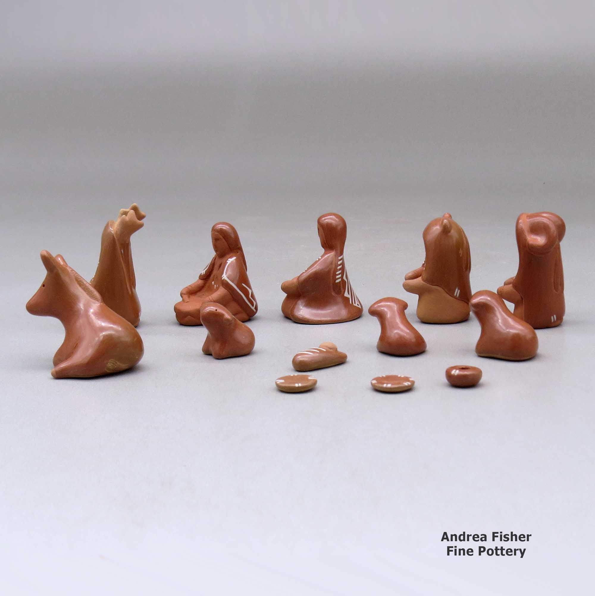 Linda Askan, Santa Clara, A thirteen piece miniature white on red Nativity scene with Navajo wise men