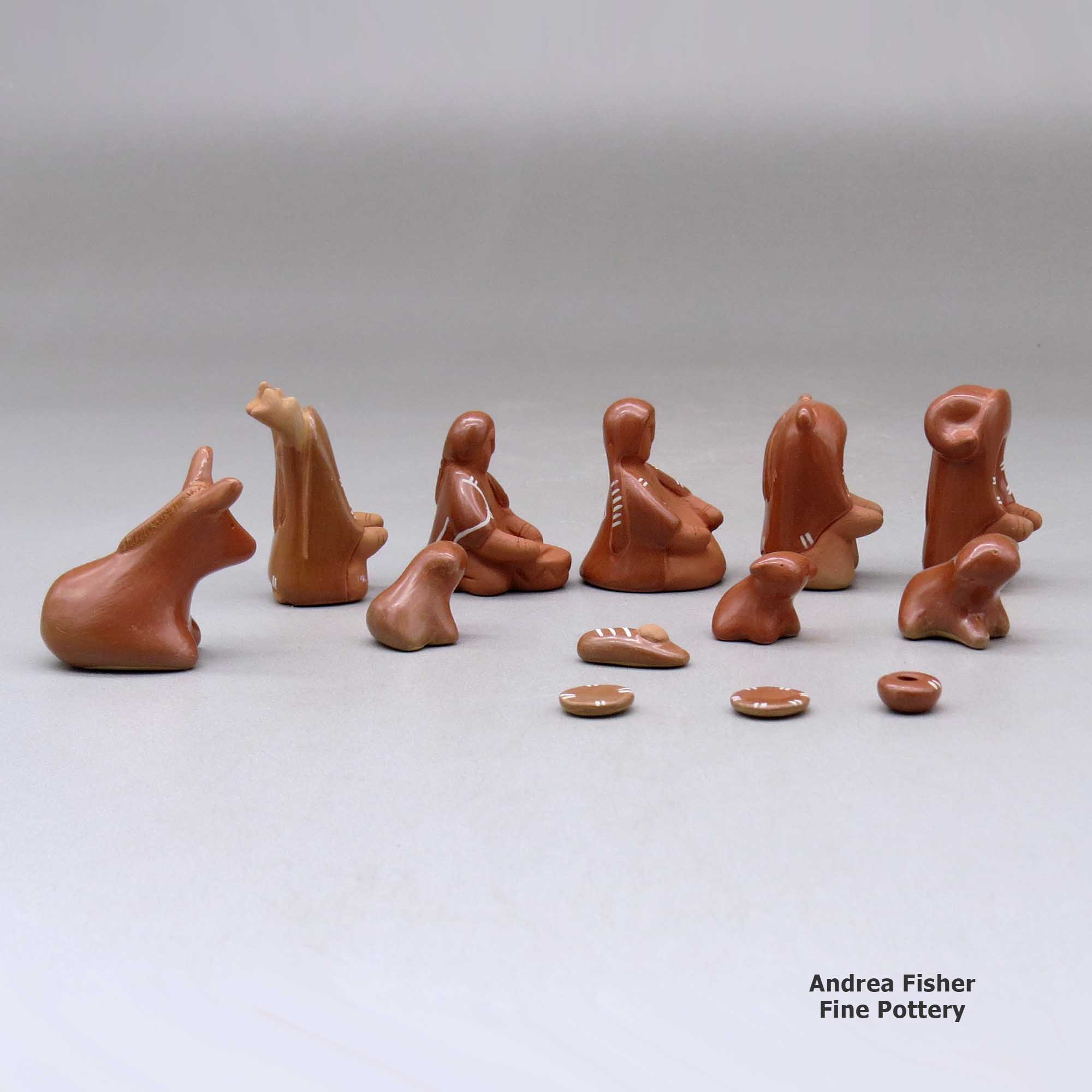 "I make my sets in miniature because it's a size that people can afford," she says. She also likes to offer something collectors might find different: a sense of embodied sacredness from the Native American perspective in combination with the familiar story of innocence and light that is evoked by the nativity scene. She tells us her nativities are designed to carry a powerful and simple message: "Our sacred relationship with the land, the sky, the animals and the elements, passed down through the generations from grandmother to daughter to granddaughter." Linda has two daughters, Diana and Rose, and she has taught both the traditional art of pottery making.