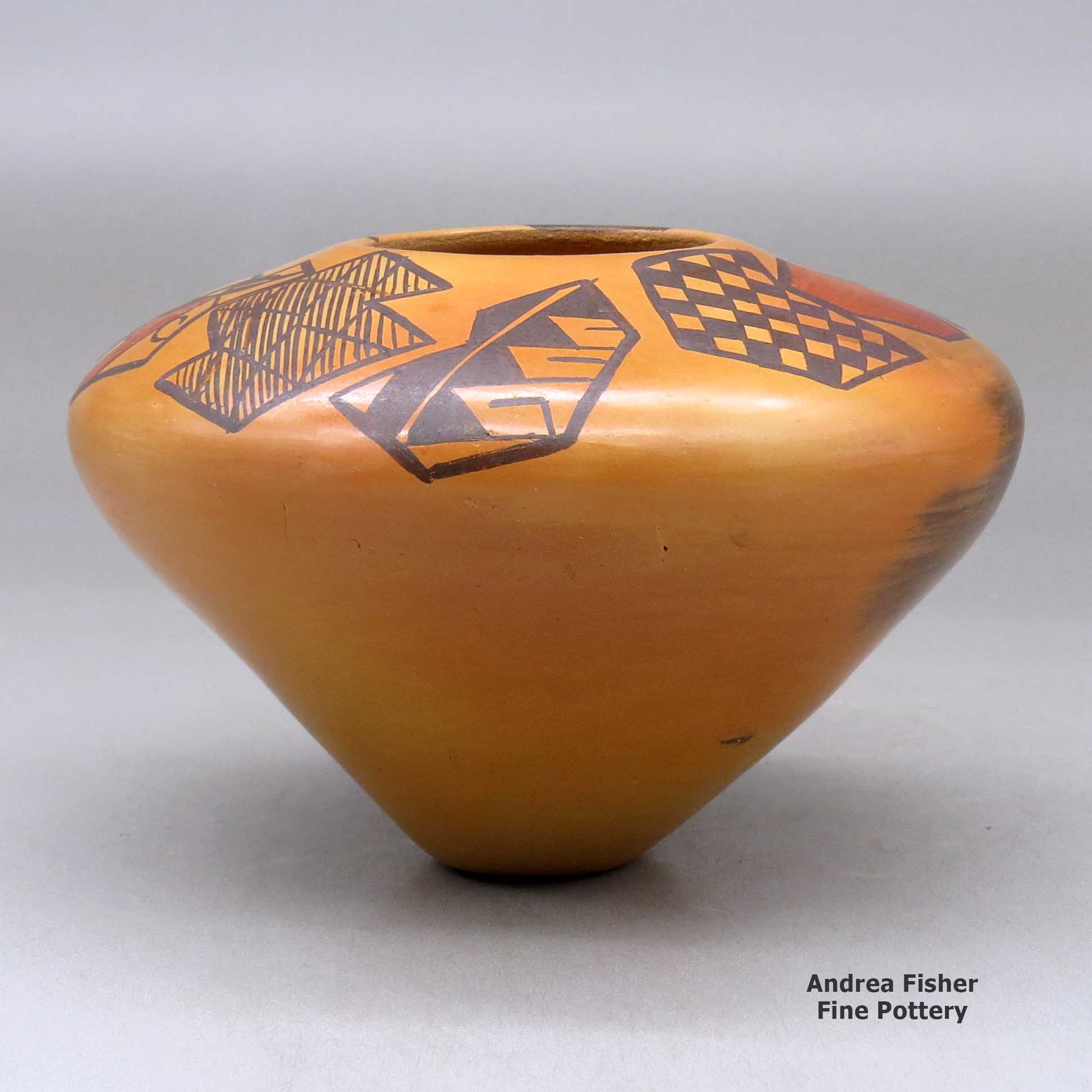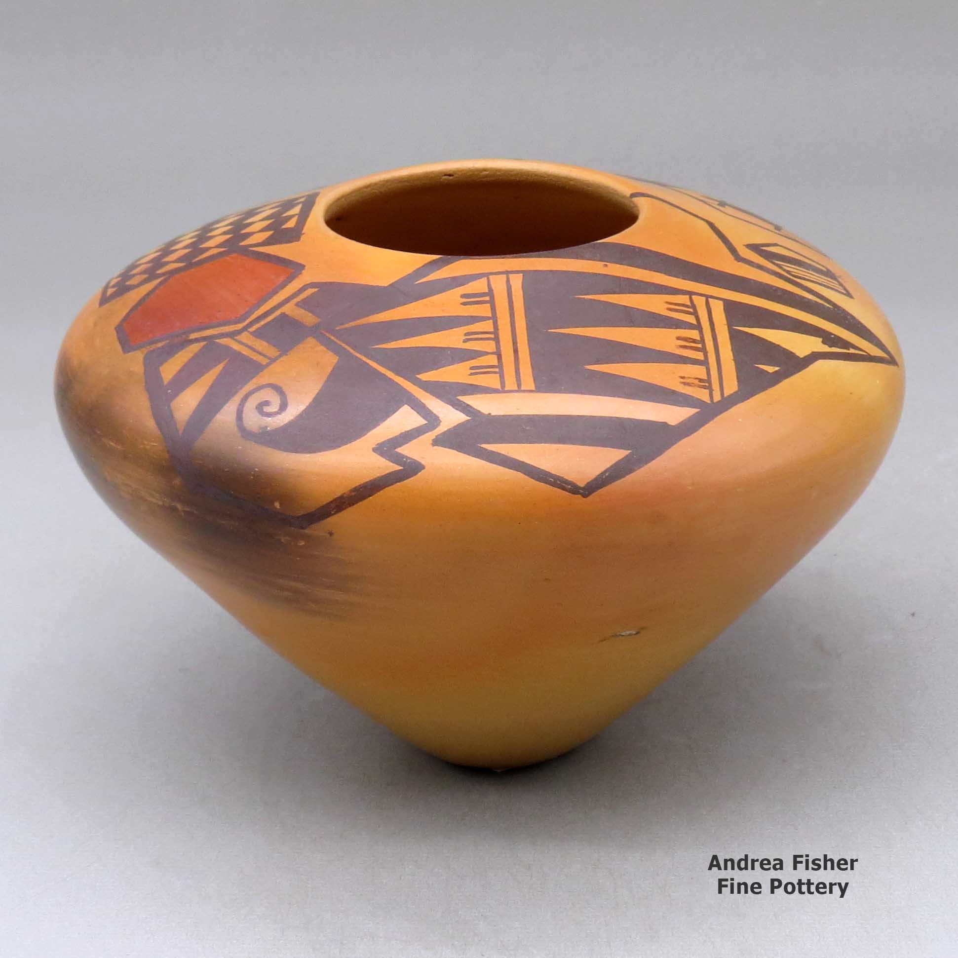 Update August 2024: At Santa Fe Indian Market this year, in Pottery Division B: Traditional Painted Pottery, Garrett won the Best of Division ribbon. Garrett was also awarded the Mark Tahbo Memorial Award. With his desire to push the boundaries of Hopi pottery, Garrett also won the Pottery, Classification IIA, Category 506 - Boundary First Place, Second Place and Honorable Mention ribbons.