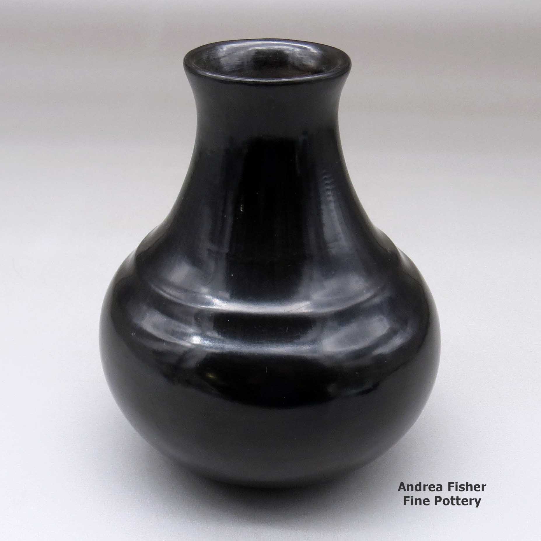 Like her siblings, Virginia eschewed the carving of clay pots and chose to create a more traditional style of Santa Clara pottery. Most of her creations are of classic shapes and often plain (except for traditional bear paw imprints on some of her pieces).