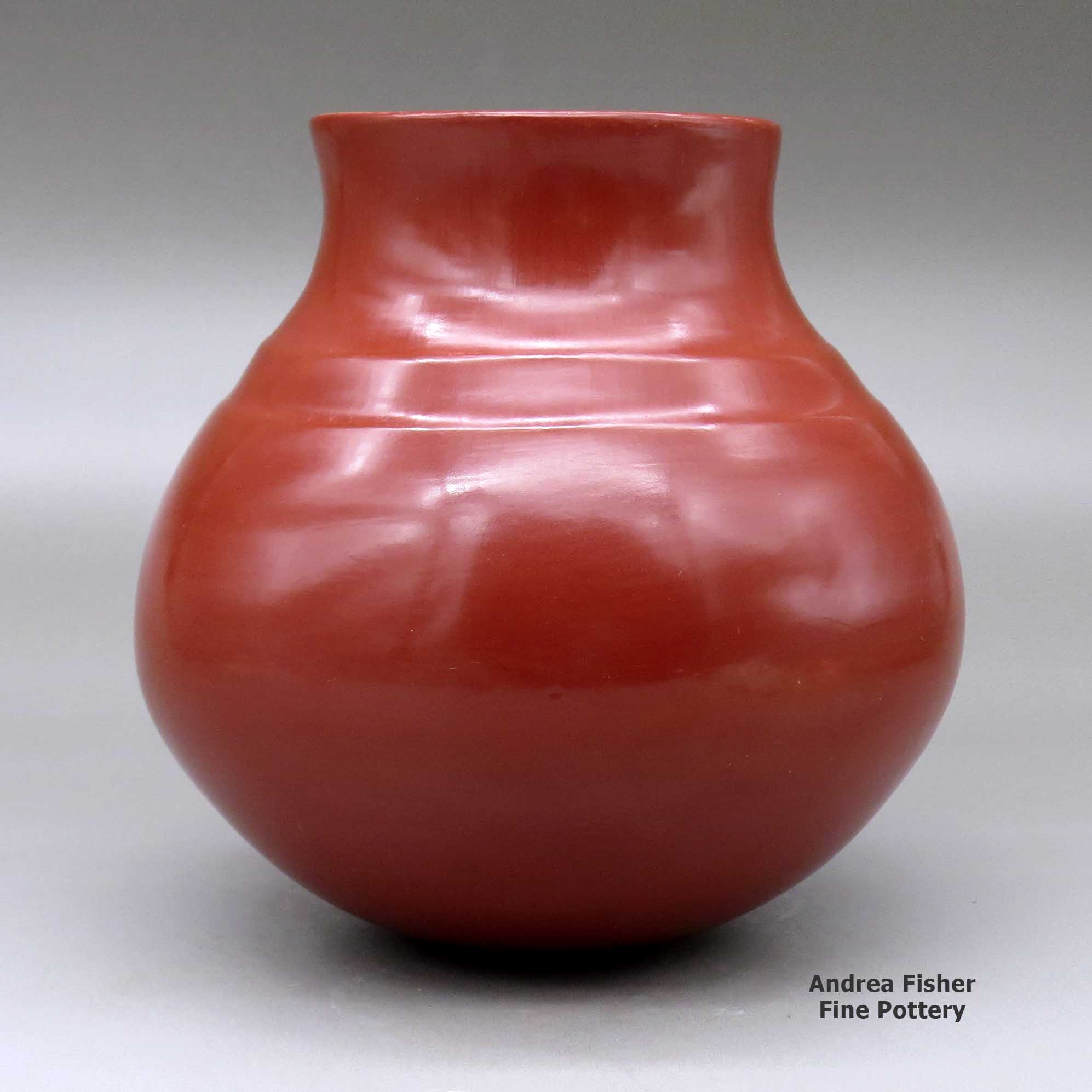 Like her siblings, Virginia eschewed the carving of clay pots and chose to create a more traditional style of Santa Clara pottery. Most of her creations are of classic shapes and often plain (except for traditional bear paw imprints on some of her pieces).