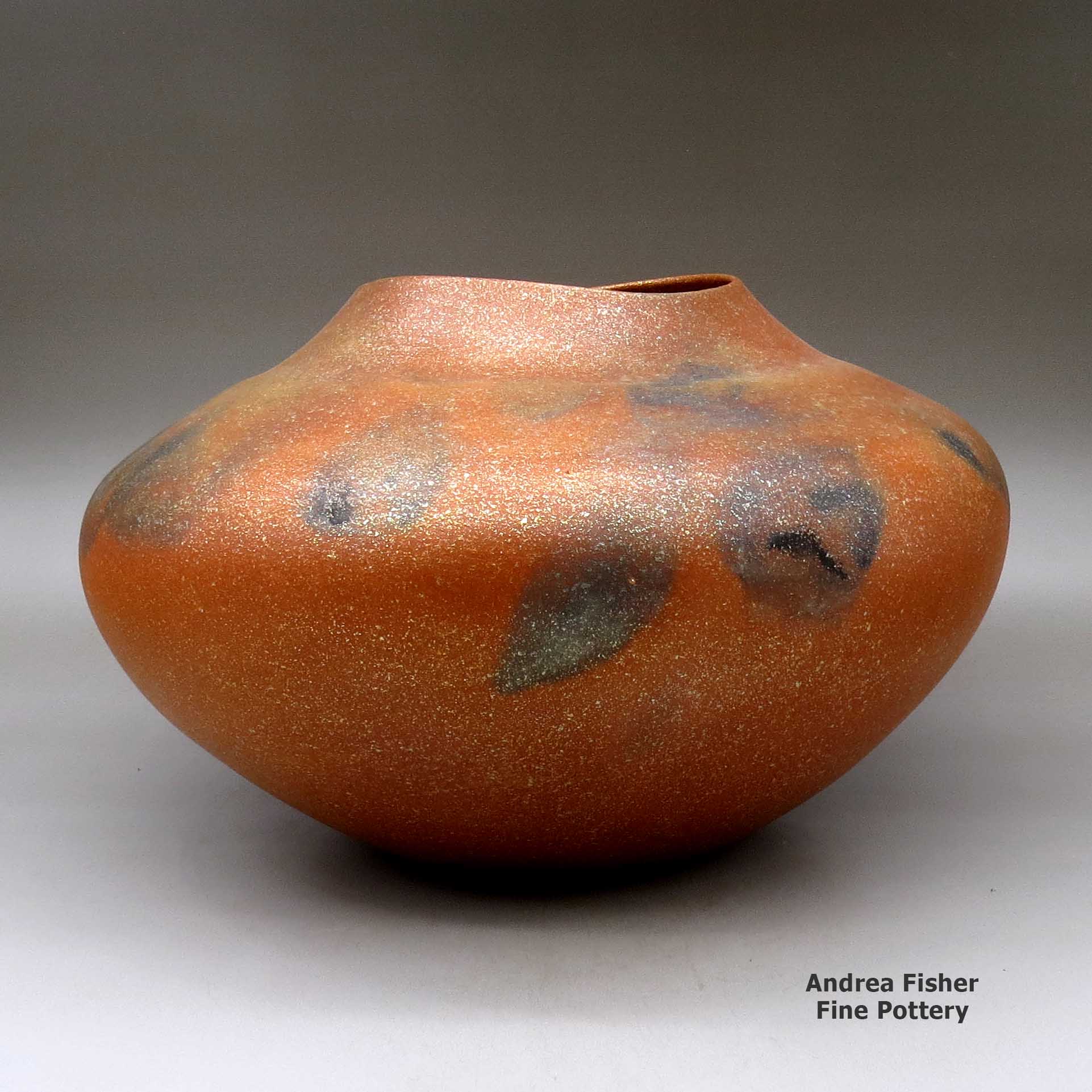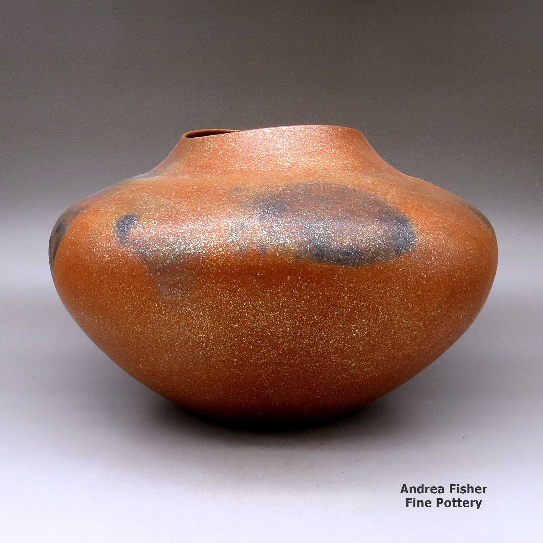 Micaceous pottery is distinguished by the sparkling mica flecks naturally distributed in the clay. Historically, micaceous pottery was used for cooking and storage by the people of Nambé, Picuris, Taos and the Jicarilla Apache. Overlooked by many collectors in the past, Lonnie Vigil has been characterized as single-handedly reviving unpainted micaceous clay pottery and establishing it as a contemporary art form.