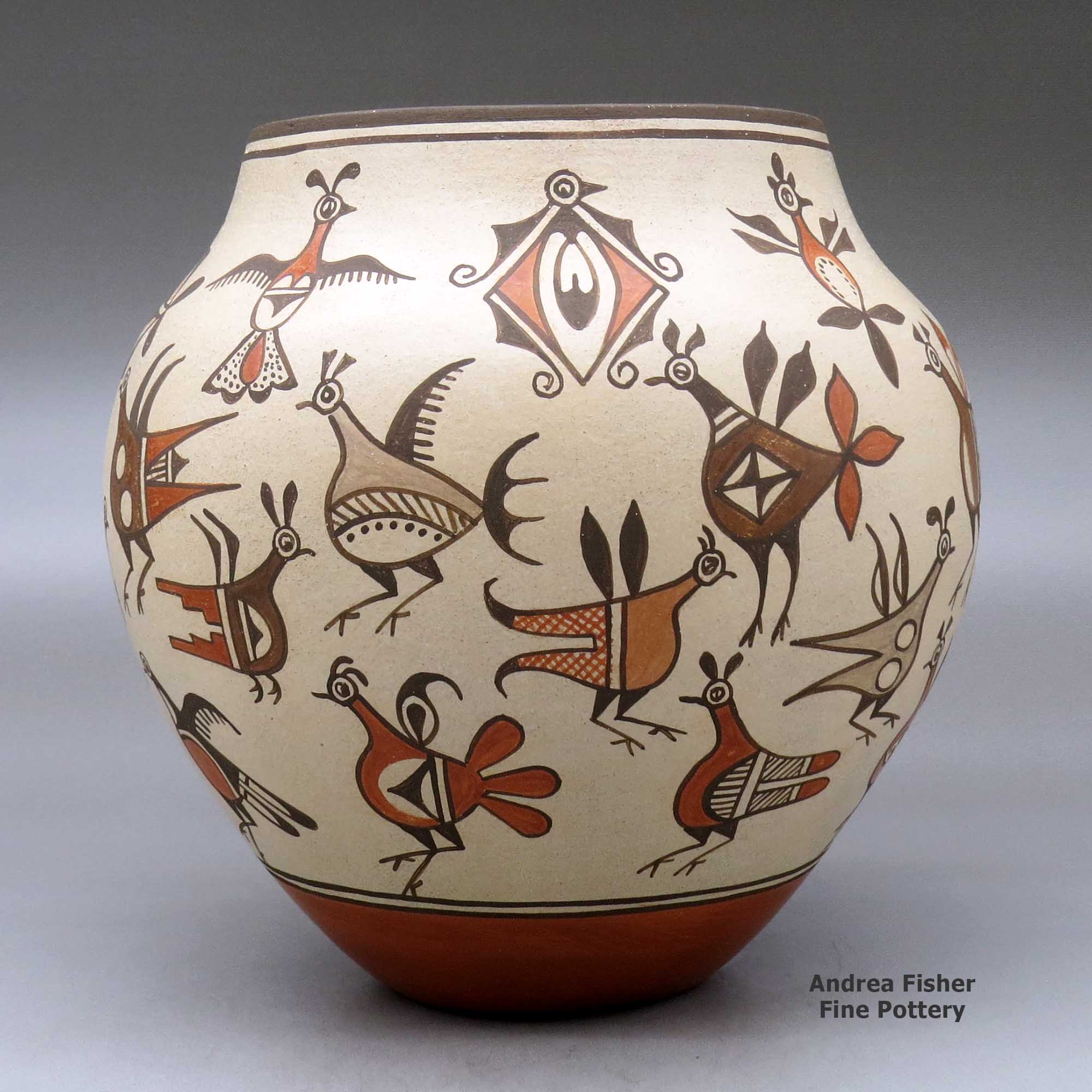 Marcellus Medina, Zia, A polychrome jar decorated with images of birds from throughout Zia pottery history