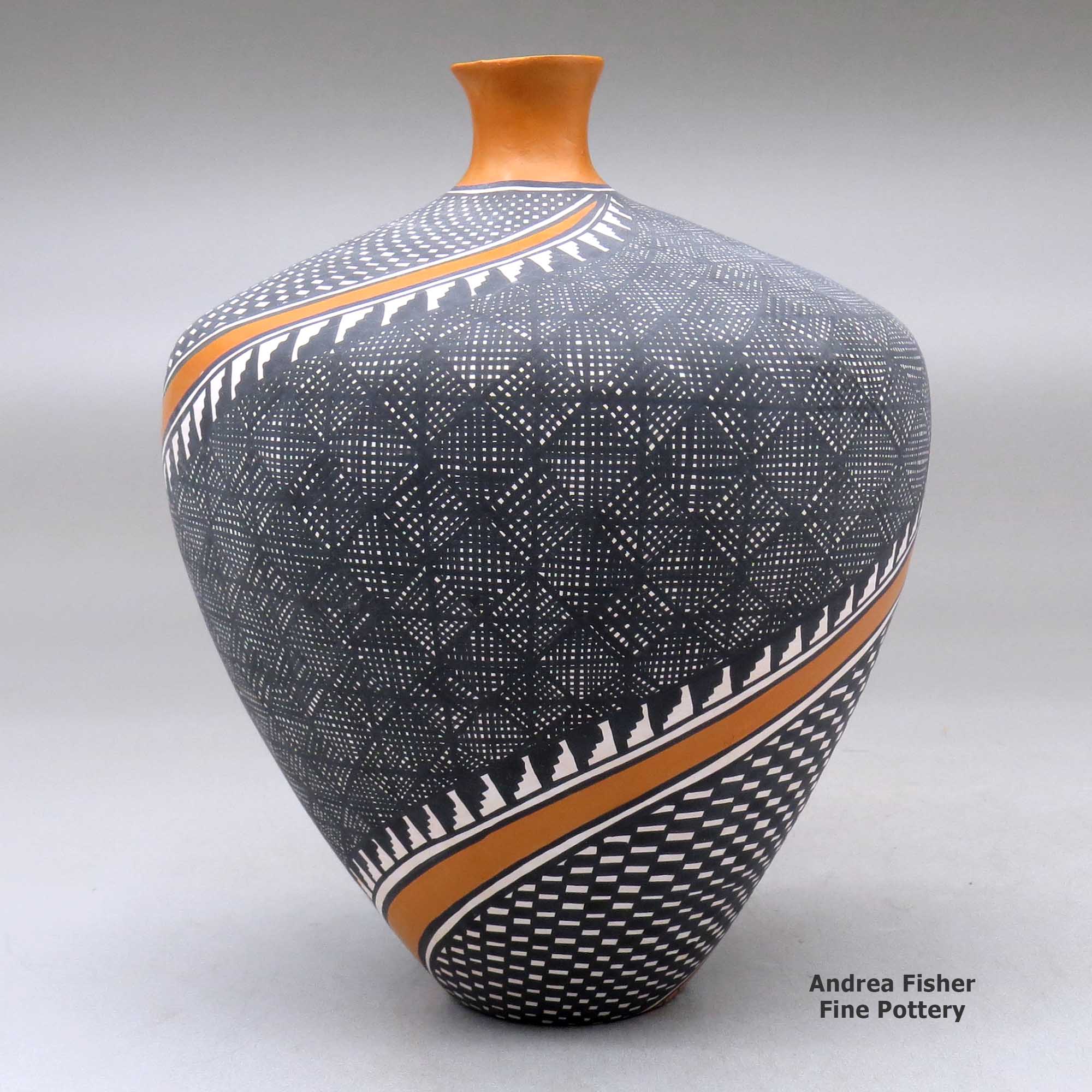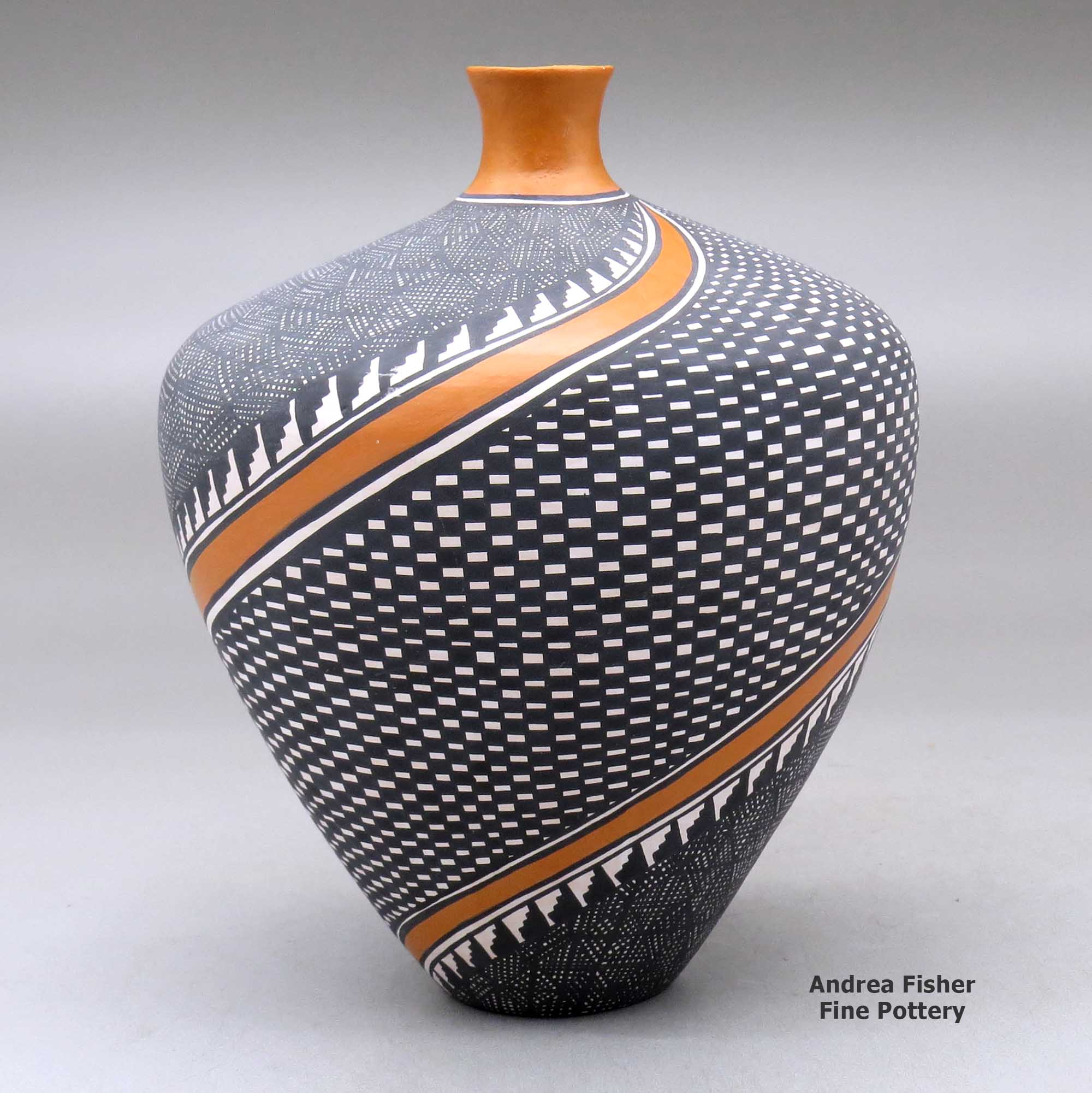 Historically, Acoma was known for large, thin-walled "ollas," jars used for storing food and water. With the arrival of the railroad and tourists in the 1880s, Acoma potters adapted the size, shapes and styles of their pots in order to appeal to the new buyers.
