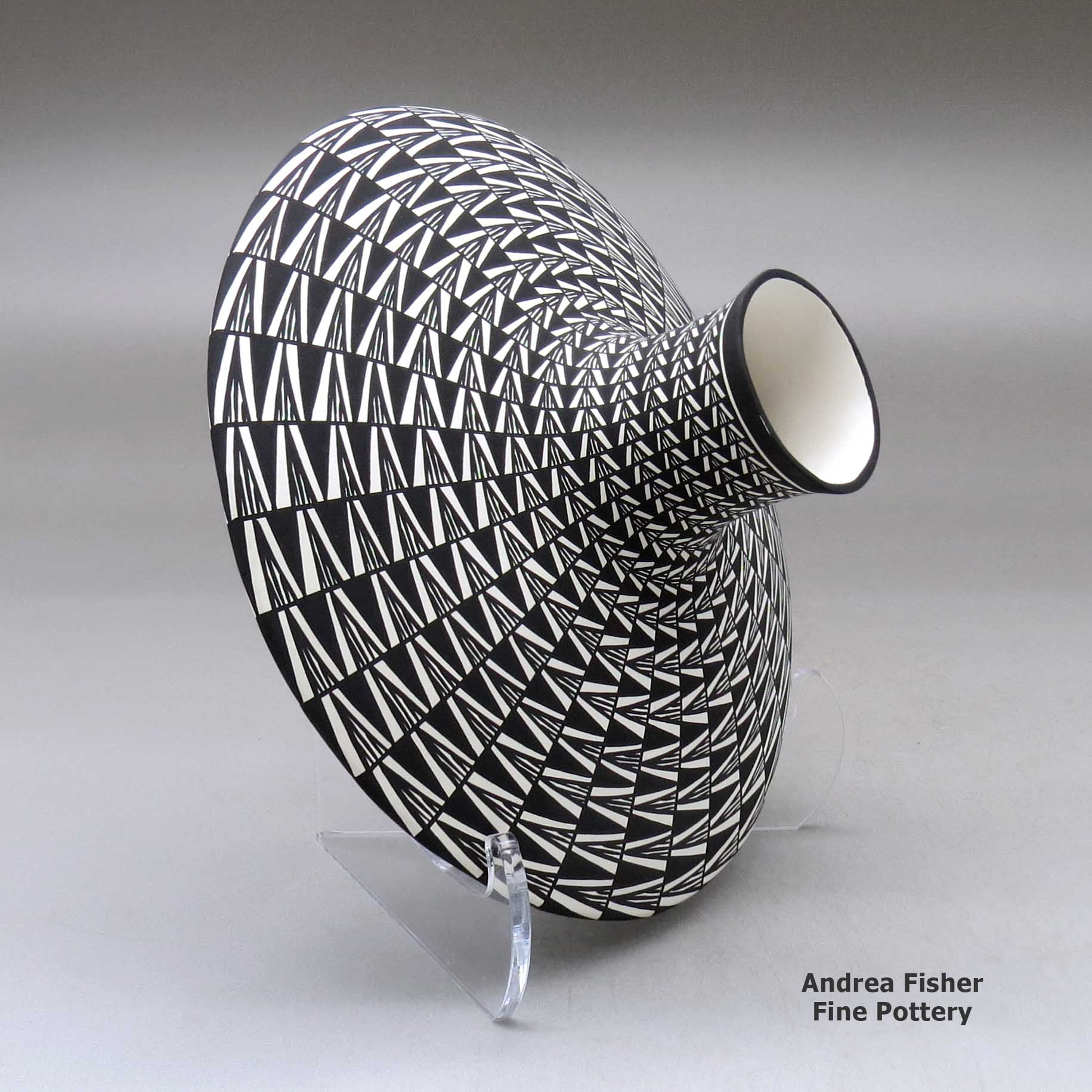 Paula Estevan, Acoma, A black on white low shouldered jar decorated with a geometric design