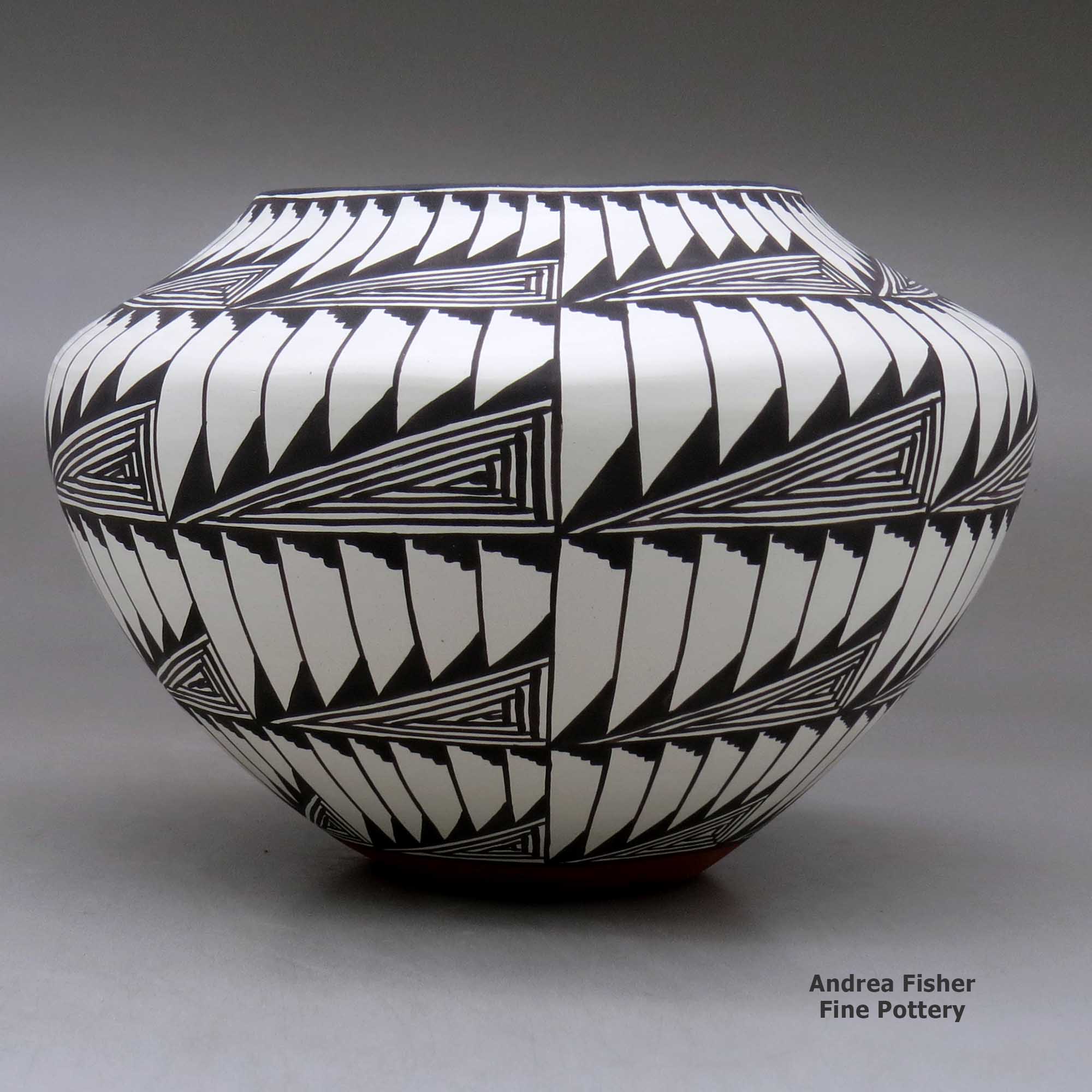 Historically, Acoma was known for large, thin-walled "ollas," jars used for storing food and water. With the arrival of the railroad and tourists in the 1880s, Acoma potters adapted the size, shapes and styles of their pots in order to appeal to the new buyers.
