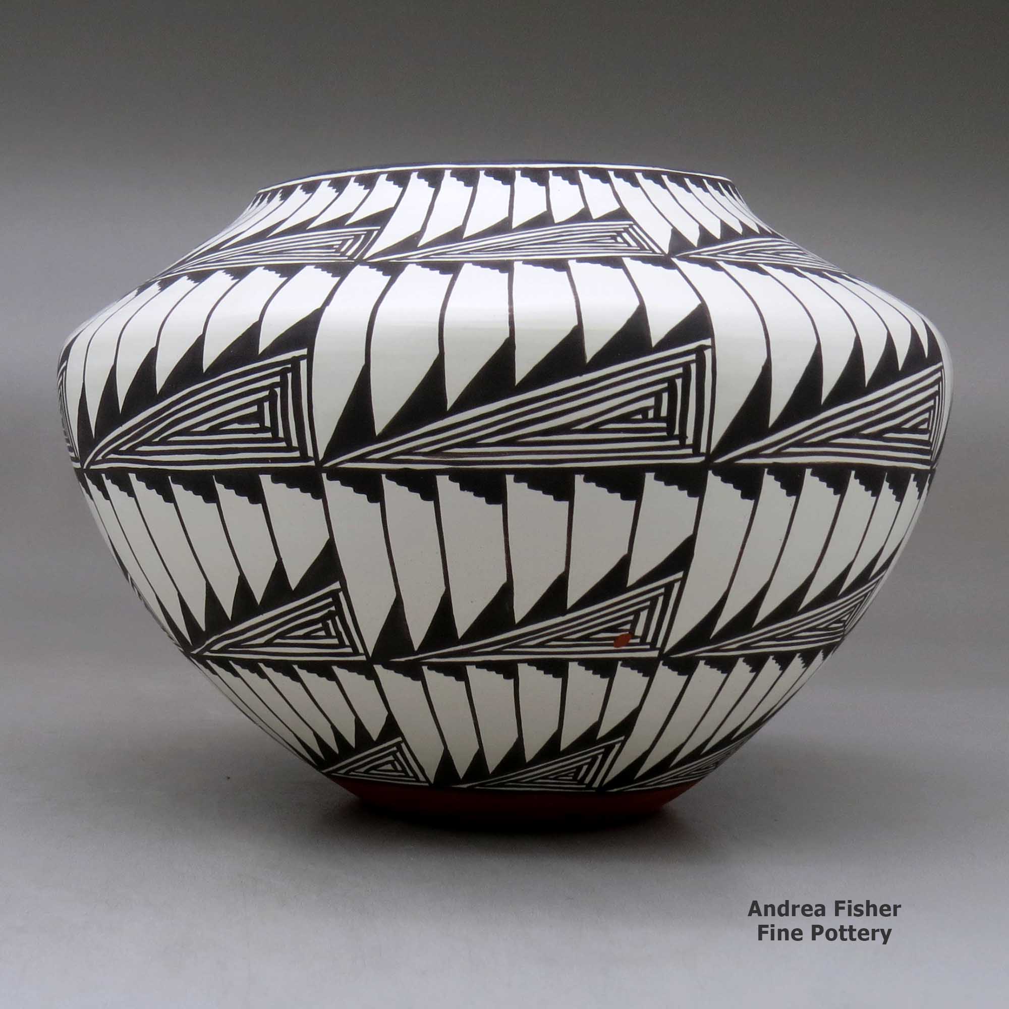 Up into the mid-1960s, most Acoma potters felt it was an inappropriate display of ego to sign their pots. Then Kenneth Chapman convinced Lucy Lewis, Jessie Garcia and Marie Z. Chino of the value of their signatures and they started signing their pieces. The 1960s is also a time when the primary Acoma white clay vein passed through a layer of widely distributed impurities, impurities that passed through the clay filtering process and showed up only during and after the firing. The problem was so bad it affected virtually every Acoma potter and every pot they made. Thankfully, by the late 1960s they had burrowed through that layer of clay and into a deeper layer that didn't have the problem.