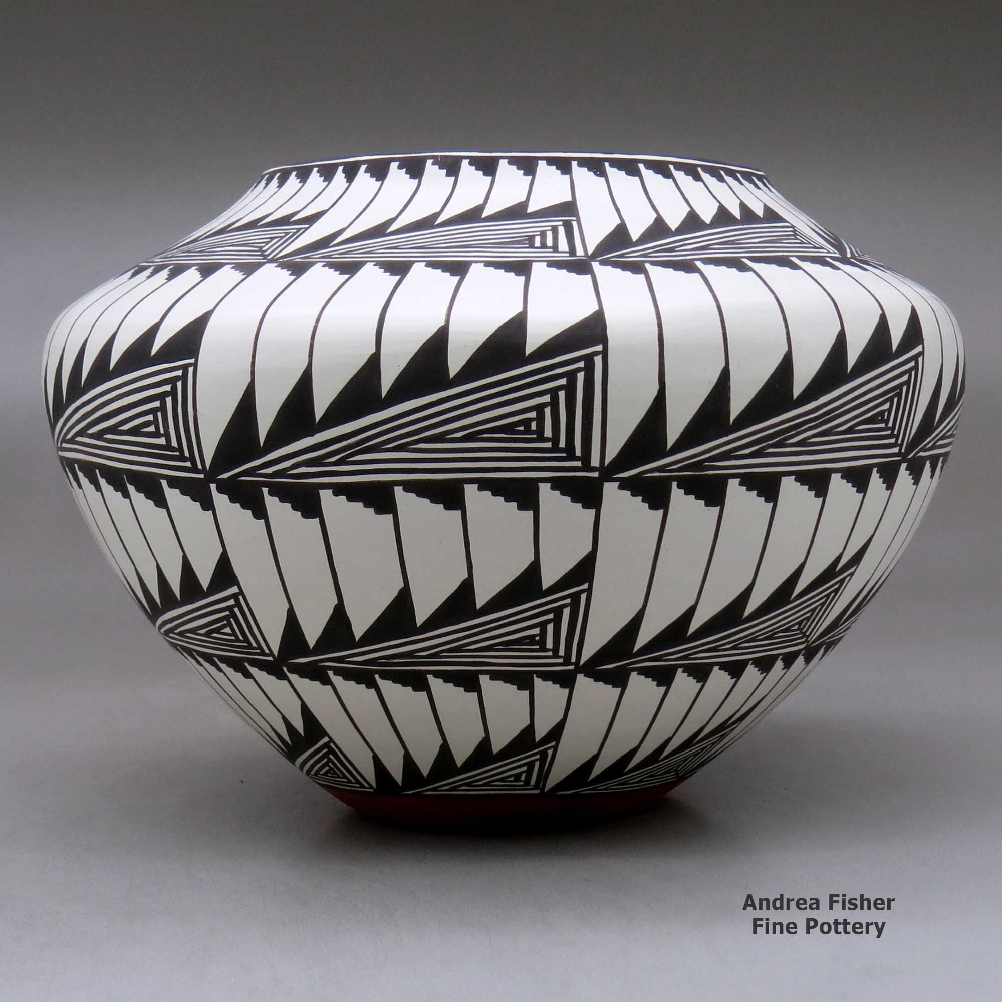 A member of the Acorn and Eagle Clans, Sandra Victorino was born to Pearl and David Leno of Acoma Pueblo in February, 1958. She grew up in a family of well-known potters and especially remembers watching her grandmother, Lita Garcia, making pottery. She says it was her aunt, Dorothy Torivio, who put her hands deep in Clay Mother and taught her most of what she knows of the traditional Acoma way to make and decorate pottery. She's been producing pottery for more than 40 years. She's also taught her son Cletus, Jr. to make pottery.