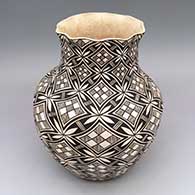 Nelda is most known for the complex optical patterns she likes to paint on her traditional and contemporary jars and bowls.